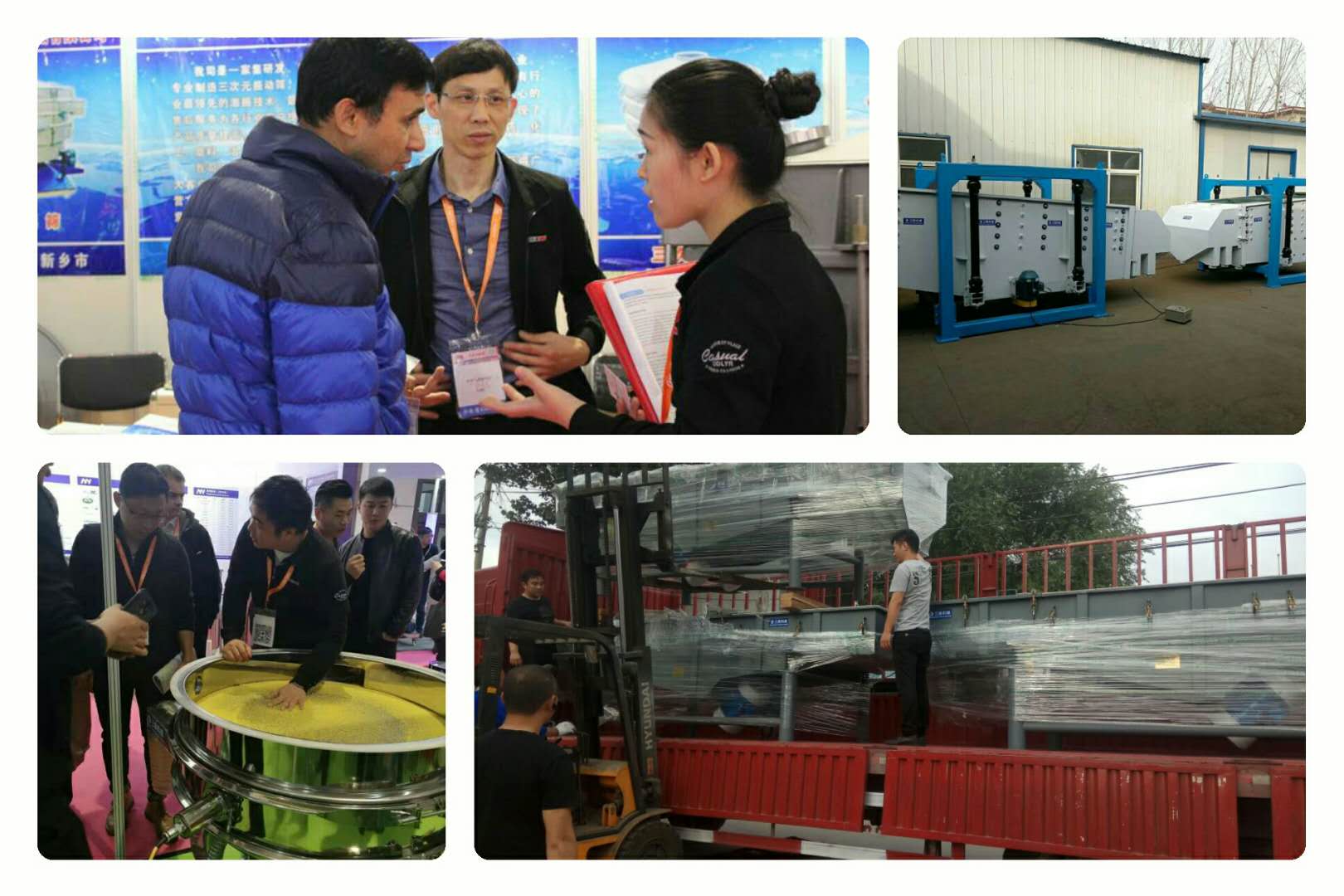 为了满足用户不同的振动筛分需要,技术人员着力于振动筛分设备的技术开发,施工工艺的创新改良,尤其是对于圆形振动筛,筛框采用自动卷圆设备,双折弯的设计,改善了原形振动筛漏料的现象,提高了工作效率。